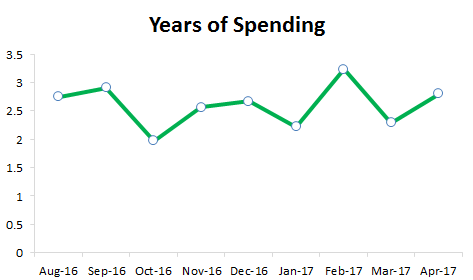 This calculation should start to become smoother and give a clearer picture based on my net worth in the coming months as I get more data. I’ll now be using the average spending over a 12 month period, which should avoid crazy fluctuations when I go on vacation or make a large purchase. It will also still paint an accurate picture, but it is my real spending. Instead of shooting up and down off my spending, I’m hoping for a more constant trend based on net worth now.