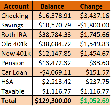 My checking and savings accounts took a hit, but that was to be expected as I had several bills that needed to paid in January. That is what caused the inflated total and huge spike in December, as I had a lot of extra cash sitting around in my accounts. The spending had already been accounted for, but the money had to be transferred to pay off the credit cards in full.