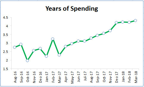 I’m back up to the same rate that I was at in January, with 35% of spending looking a long way off. We do still have plenty of time in 2018 though. I’m hoping that even if the market remains flat, I’ll personally be able to get to 30% from just contributions.